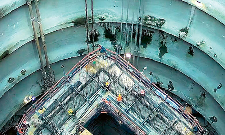 A tower that glides up underground? Sounds strange – but it is. You can see it in the centre shaft of the Ibbenbüren mine water channel. The ATI consortium erected the 70 m high steel and concrete structure in just two weeks (Figure 1).