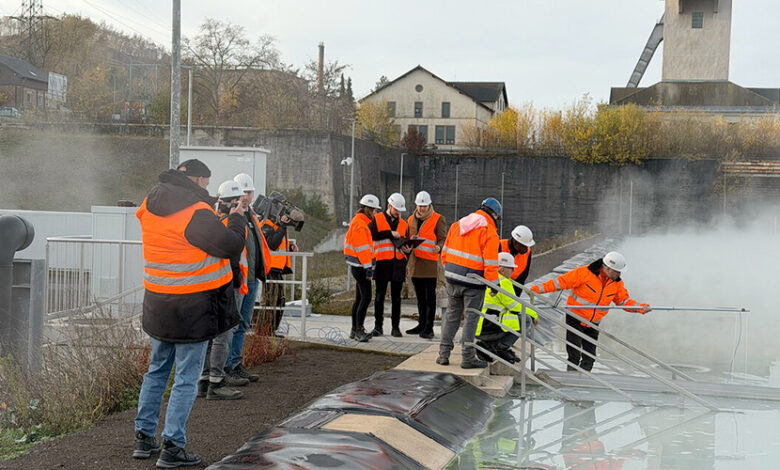 To mark the start of the pilot operation, representatives from RAG, SpectroMarine and BRYCK met at the Camphausen mine water treatment plant on 13 November 2025. Openness, partnership and a drive to implement characterised the work on installing the analysis prototype. All sides were enthusiastic about developing solutions. Saarländischer Rundfunk accompanied the kick-off. Speaking to the media representatives, Svenja Weinand from RAG’s Mine Water Planning/Concepts department (T-WH-GK) emphasised the importance of real-time water analysis: “When a full analysis of the water is carried out, a sampler has to go to the sampling point, transfer the water into sample bottles and take it to the laboratory. There it is analysed. Then the data has to come back to us.” Depending on the scope of the analysis, this can take anywhere from a few days to a few weeks. Only with live values can RAG react quickly to changes in mine water.